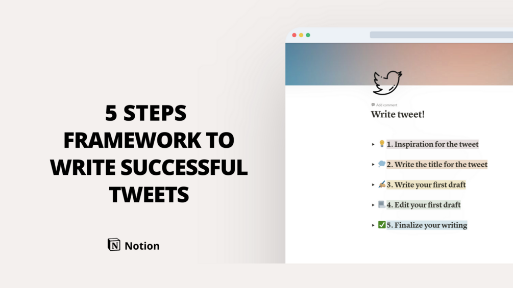 CURATE TWEETS - This is the section where you will write out your tweets, threads, or any other content you want to share online. This system is designed to make this process easy for you by breaking it down into 5 easy steps. a- Inspiration for the tweet